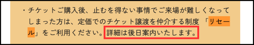 チケット応募詳細の欄に、リセールを開催すると明記されていました。